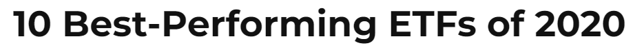 2021년을 맞이해서 오늘은 2020년 최고의 수익률을 얻은 미국 ETF 1위부터 10위까지 알아보겠습니다. 물론 2020년 성과가 2021년에 그대로 이어진다는 보장은 없지만, 작년의 흐름을 되짚어보며, 올해는 어떤 ETF가 좋은 성과를 보여 줄지 생각할 때 참고해보면 좋을 것 같습니다.