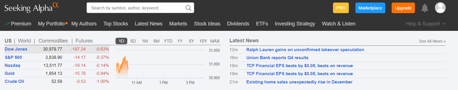 시킹알파(https://seekingalpha.com/)는 위 사진에서 보이는 것처럼 다른 사이트와 비슷합니다. 주식에 관련된 자료나 기사, 투자 정보, 시세를 제공합니다. 유료 서비스도 있지만, 무료로도 대부분 정보를 이용할 수 있습니다. 시킹알파의 내용이 방대해서 모든 내용을 소개 하기에 시간이 많이 걸립니다. 그래서 오늘은 직접 포트폴리오를 구성해서 비교할 수 있는 방법을 소개하겠습니다.