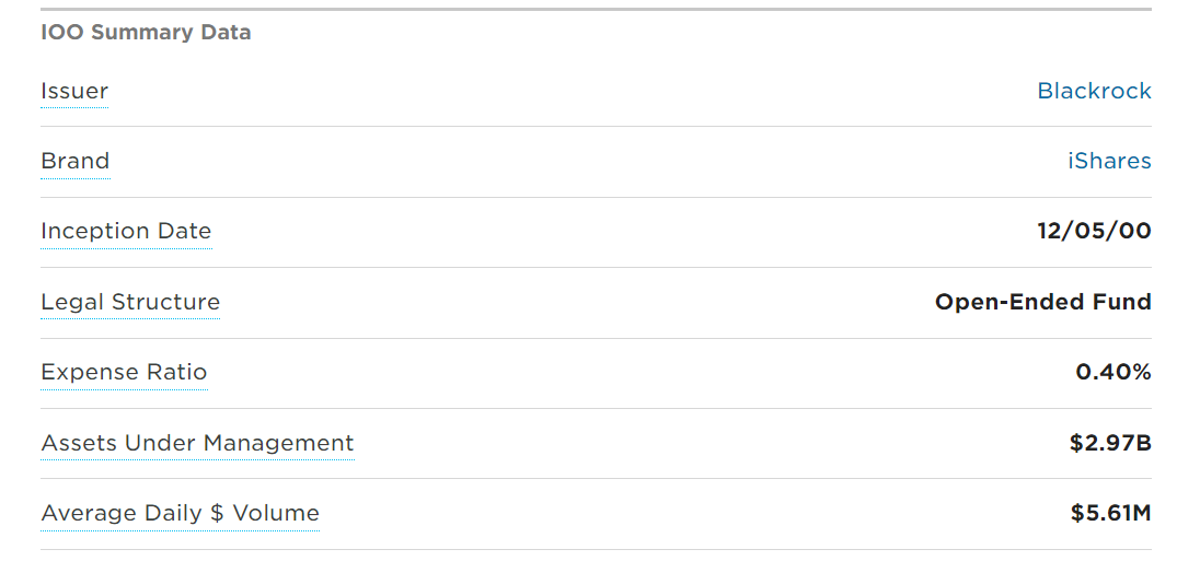 미국 ETF IOO 소개