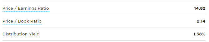 PER 경우 14.82로 주당 순이익보다 14.82배 높은 상태고, PBR는 2.14로 순자산보다 주식의 가치가 2.14배 높은 상태입니다. 동일한 인덱스를 추종 하는 JEMA ETF의 PER 24.83, PBR 2.89 보다 비슷하지만 조금 낮은 상태입니다.