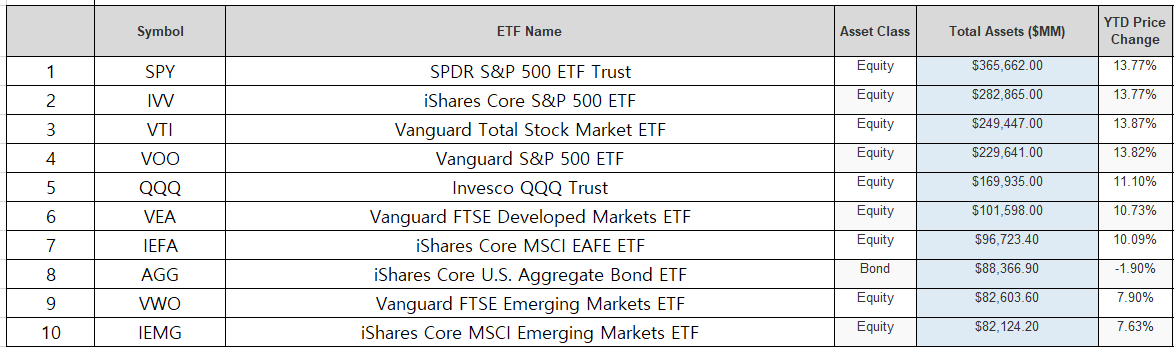 오늘은 금일 기준 2021년 6월 미국 ETF 운용자산 순위에 대해서 알아보겠습니다. 운용자산이 많은 ETF는 자산이 많아서 상장폐지가 되기 어려운 ETF를 뜻합니다. 그래서 운용 자산이 많은 ETF에 투자를 하면 안전하다고 볼 수 있습니다.