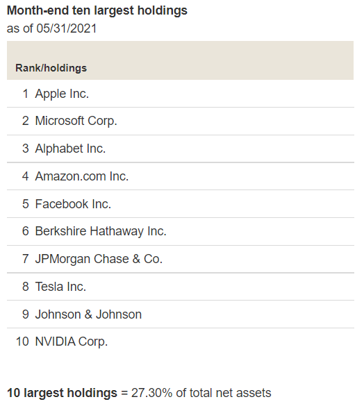 미국 VOO ETF 상위 보유 주식은 기업 이름을 보면 누구나 알 수 있는 유명 기업들이 속해 있습니다. 애플, 마이크로소프트, 구글(Alphabet), 아마존이 속해 있습니다. VOO ETF에 투자하면 미국 대표기업에 투자하는 효과가 있습니다.