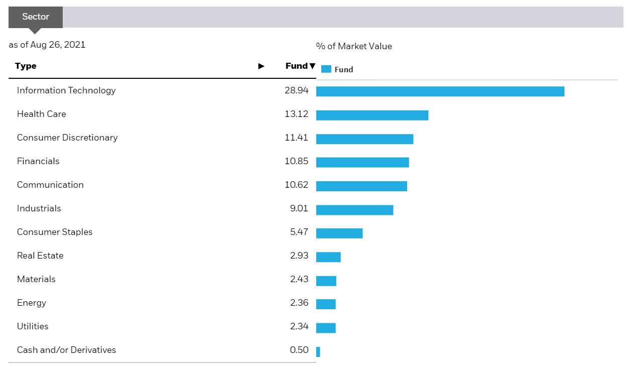 ESGU ETF의 보유 섹터는 기술, 헬스 케어, 순환 소비재, 금융, 커뮤니케이션 순이며, 이들 섹터들의 총비중이 75%를 차지하고 있습니다. 이는 어제 소개했던 ESGV ETF와 비슷합니다. 이 자료를 보면 상위 섹터들에 속한 기업들이 ESG 활동에 노력을 많이 하고 있다는 것을 알 수 있습니다.