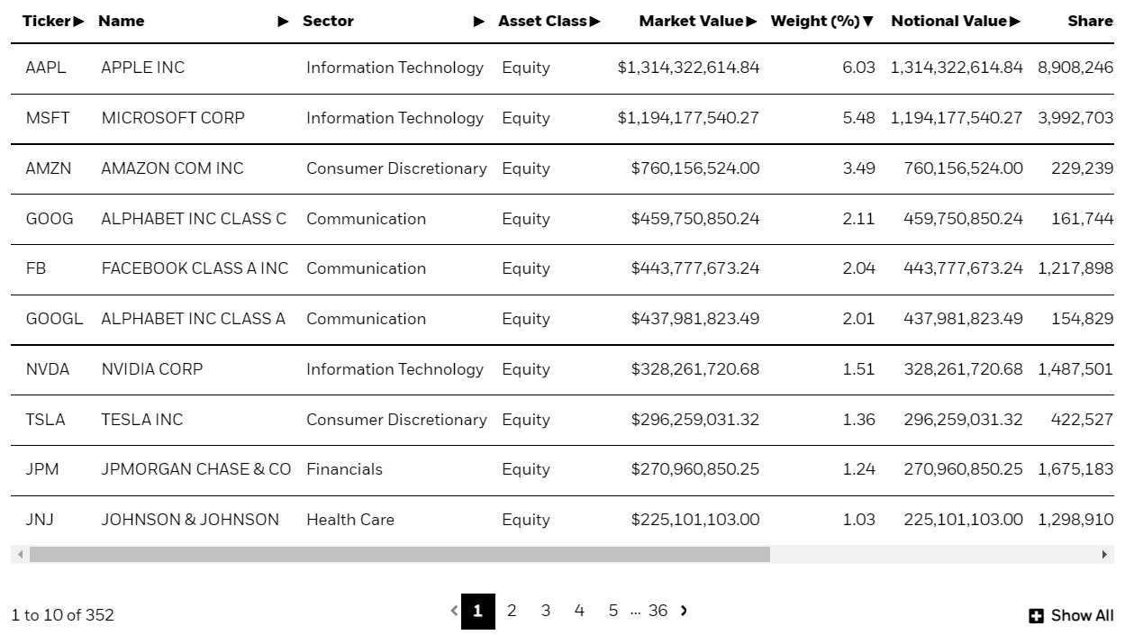 보유 비중 TOP 10 기업으로는 애플, 마이크로소프트, 구글, 페이스북, 테슬라, 엔비디아, JP 모건, 존슨엔존슨 같은 미국 대표 대기업들이 포함되어 있습니다. ESGU ETF는 352개 기업 주식에 투자하고 있습니다.