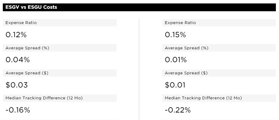 미국 ETF ESGV와 ESGU 비용 비교