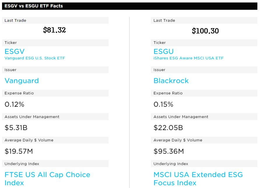 미국 ETF ESGV와 ESGU 기본 정보 비교