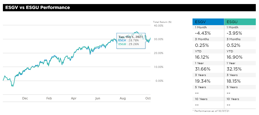 미국 ETF ESGV와 ESGU 성과 비교